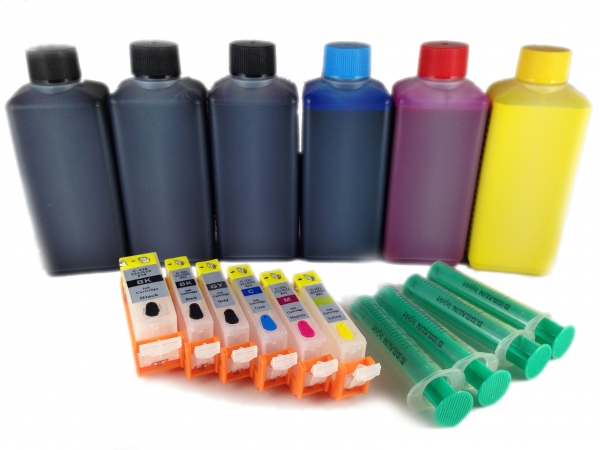 evolution 6x Fill In Canon PGI-525, CLI-526 ohne Auto Reset Chip incl. 6x250ml SENSIENT Tinte